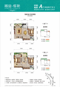 在售建面约81-145㎡平层及跃层洋房,建面单价约10000-12000元/㎡.