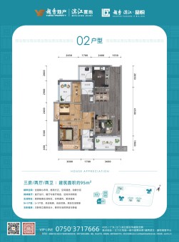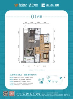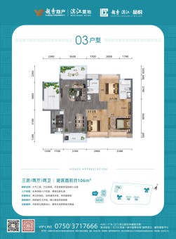 越秀 滨江·品悦在售1栋余少量,建面约96、106㎡,三房两厅设计,两梯五户,29层高,毛坯均价约10500元/㎡。