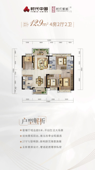 时代倾城多户型现正发售中,三居室户型有90㎡、96㎡、99㎡、118㎡,四居室129㎡在售,两梯四户,带装均价12000-13000元/㎡。