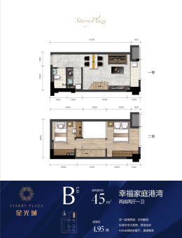 星光城广场在售1幢公寓,价格约8600元/㎡,建筑面积约42/45㎡,两房两厅设计,4梯28户,高16层。