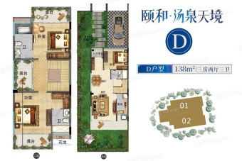在售J组团,建面约45㎡温泉洋房,带装修均价约8500元/㎡;另在售T组团,建面约73-110㎡温泉林居三房,总价仅约50万起,带装修均价约7500元/㎡。在售建面约138平泉能院墅,毛坯均价约11130元/平。