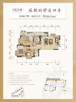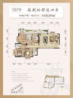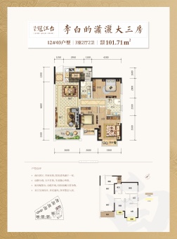 汉军冠江台主推户型建面约126~222㎡,价格约12000元/㎡起