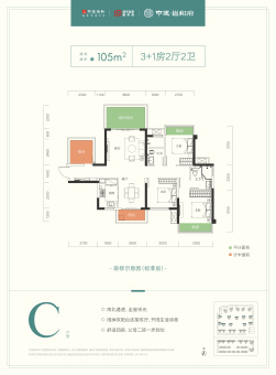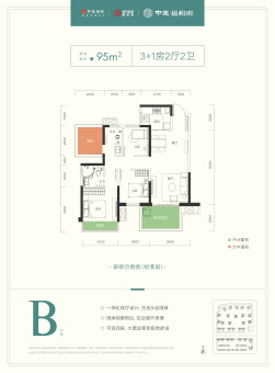 中建邕和府主推户型建面约100~124㎡,价格约9500元/㎡起