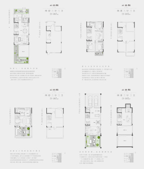 187联排户型均价24000元/㎡,207联排户型均价约26000元/㎡,140平层户型均价12200元/㎡,166平层户型均价约13000元/㎡。