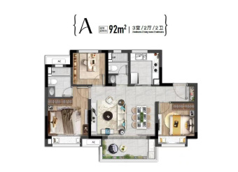 在售户型2房73㎡,74㎡,3房92㎡,均价47100元/㎡