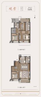 叠墅600万元/套左右, 户型:上叠149、下叠162