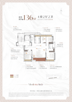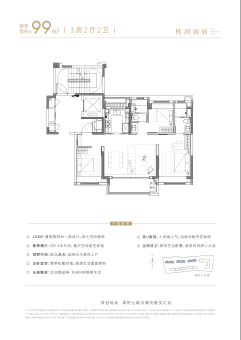 主力在售建筑面积约99㎡、136㎡奢境三房/四房,均价约60000元/㎡,一房一价