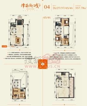 区域内配有高级会所1座,大型商业中心,中心轴线处为大型商业裙房,星级酒店,4座幼儿园,1座重点中学,2座重点小学,1座养老院与医疗服务中心。临近海河故道公园,内部绿化环境好,水域环境较好,适宜居住。 B区园林以中央水景为主要景观带,配备了老人休闲、儿童娱乐、健身场所等多个功能区。