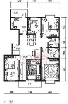 小区:健身广场、羽毛球场、篮球场、儿童乐园、住宅商业、景观长廊、坡地庭院等