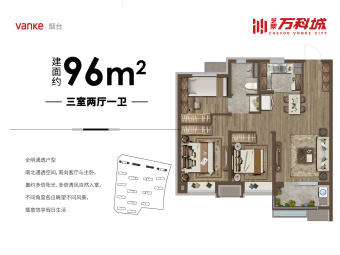 万科城项目项目位于三区交汇核心,周边三横一纵立体交通网。项目位于德润路和华盛路交叉口,项目南边是魁玉路,交通便捷,通往各区及县级市。项目门口有芝罘万科城公交站点,12、18、76路公交车可直达新都汇、火车站、大悦城及高铁南站。