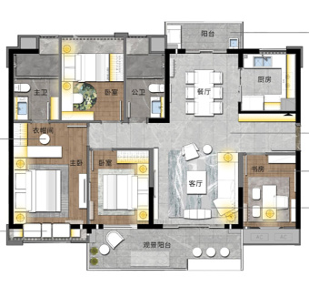 休闲配套:约12000㎡公建配套,约1200㎡外围活动广场、约1600㎡阳光中庭休闲场地、约1900㎡全龄健身场地、约800米健康跑道、约1000㎡儿童活动场地等