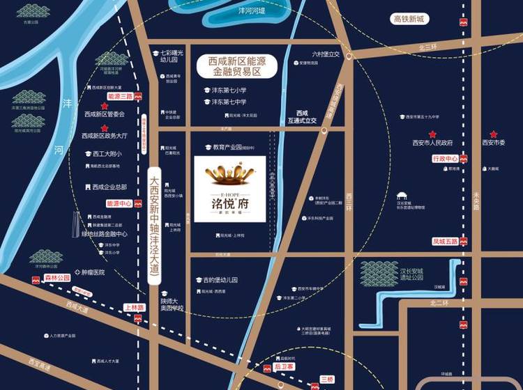 电建地产·洺悦府为电建地产四大产品系之一“洺悦系”的西安首秀,着力打造“悦系建筑,悦美人生”的社区理念;户型方正全明通透,超大南向面宽,小区园林方面“一环、二轴、八景”为设计理念,内设有氧雾森系统、夜光运动跑道,室外会客健身场地、家庭邻里空间、儿童活动乐园等,满足业主全龄段的活动需求。项目周边路网通达(三环、绕城高速、快速干道等),轨道交通便捷通达全城(1号线上林路站、16号线上林路站);醇熟生活配套环绕,包含优质的教育资源(西工大附小、陕师大奥园学校、沣东第七小学、中学、吉的堡幼儿园等)、丰富的商业配套(华润万象城、宜家家居、南美贸易中心、澳门施美兰商业广场、沣西吾悦广场等)、优美的生态环境(沣渭三角洲湿地公园)及完善的医疗保障(陕西中医院第二附院、沣东国际医院等),满足业主全方位的生活所需。