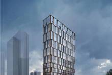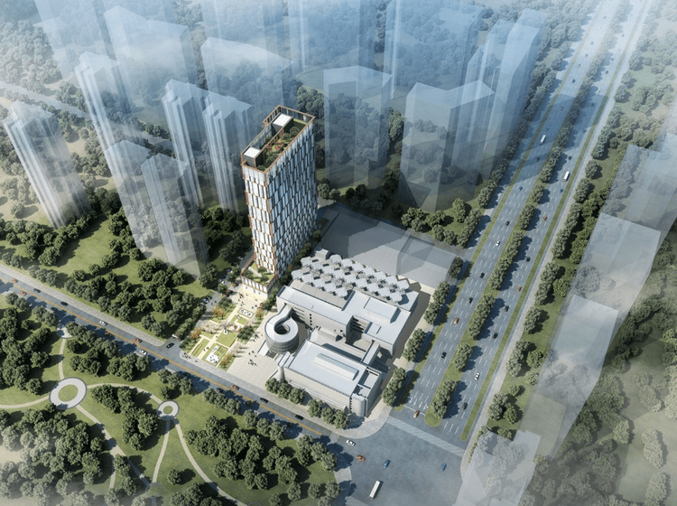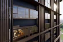 Domo One 项目位于二环边文景路与凤城一路交汇处西北角的位置,门前这条路就是凤城一路,而售楼部在我激光笔所指的地方。项目总占地 6054 ㎡,建筑面积 3.6 万㎡,容积率 4.5,绿化率约 25%,由商业,裙楼,及精品公寓组成,搭配外立面纯玻璃幕墙结构,后期绝对是本区域一颗耀眼的明星。