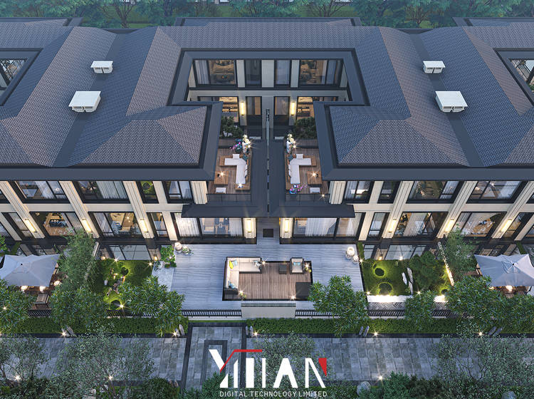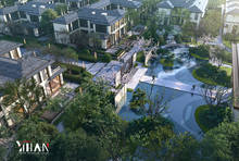 项目占地 231 亩,整体采用唐•长安城坊式布局。一期项目占地 110 亩,共 55 栋,144 套大型低密度建筑群,0.49 容积率,2 层建筑。