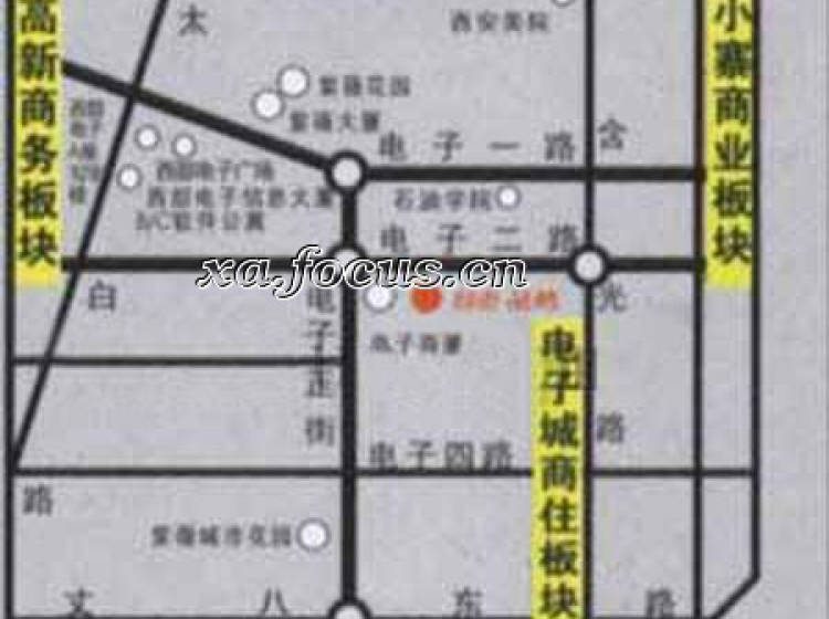学校: 石油大学、美术学院、联合大学、交大医学院、交大财经学院、电子科技大学、西安幼儿师范、陕西省银行学校、高新一中、电子一中、高新小学、电子城小学、高新一幼、周边研究所幼儿园。
