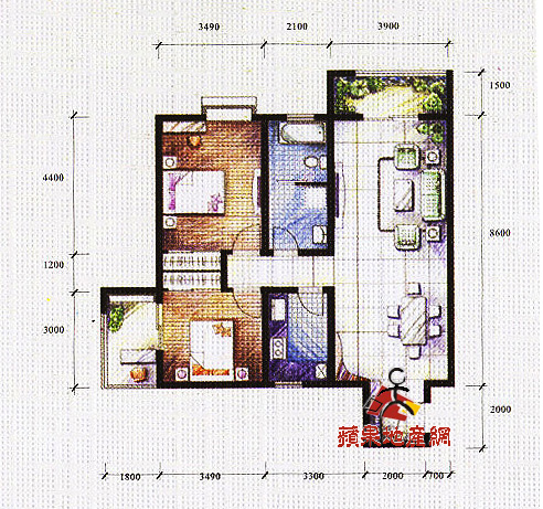 2室1厅1卫-自由品格2室-1厅-1卫-1厨---92.14平方米