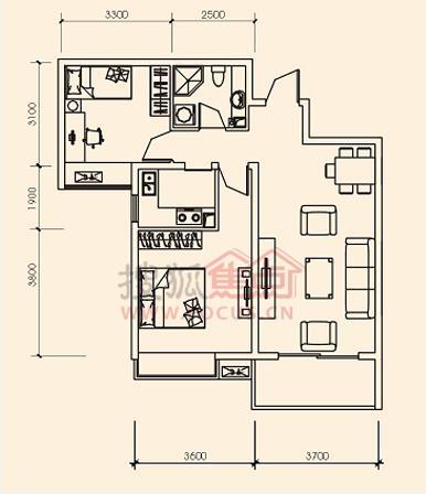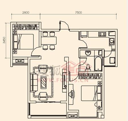 2室2厅1卫-2室2厅1厨1卫1阳台B