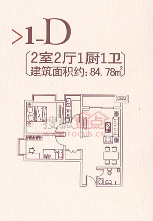 2室2厅1卫-84.78㎡2室2厅1厨1卫1-D