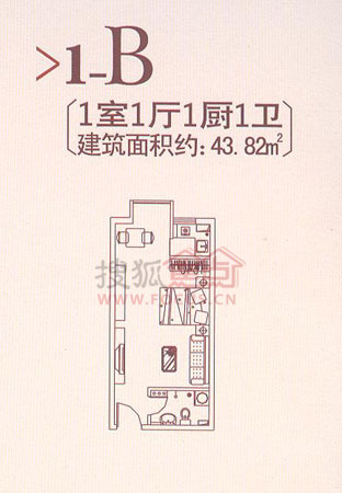 1室1厅1卫-43.82㎡一室一厅一卫1-B