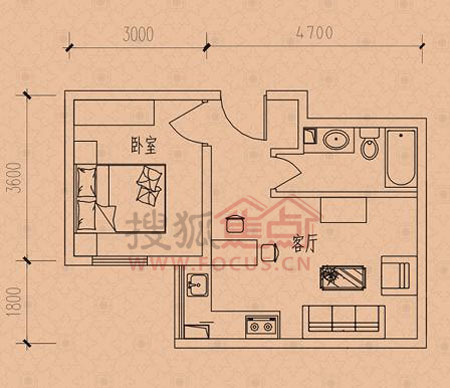 1室1厅1卫-1室1厅1卫1独立储物间E