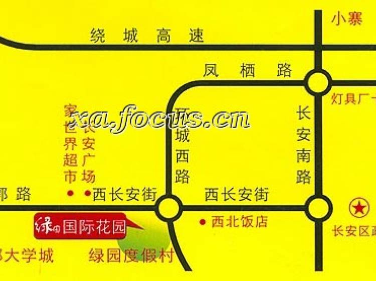 项目位于长安区环城西路与西长安街十字西南角,绿园度假村内,是一个集餐饮、住宿、会议接待、休闲娱乐于一体的绿色成熟社区。西临西部大学城,与长安广场隔街相望。