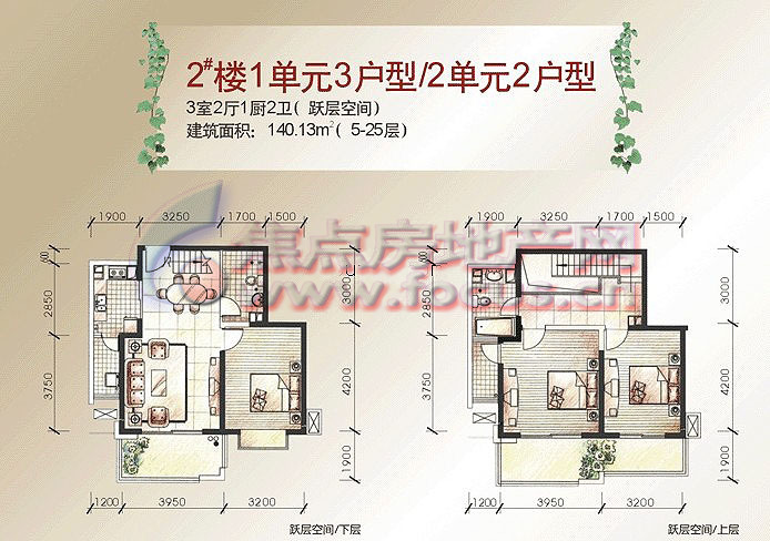2号楼3室2厅2卫140.13平米1单元3号上层