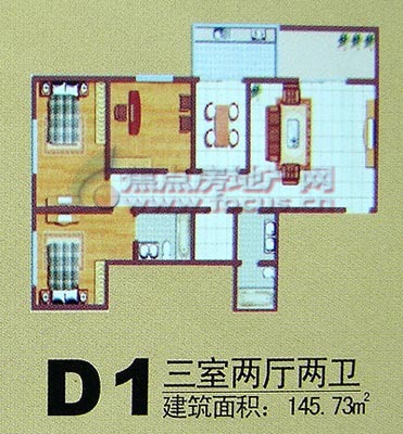 3室2厅2卫-D1- 3室2厅2卫145.73平米