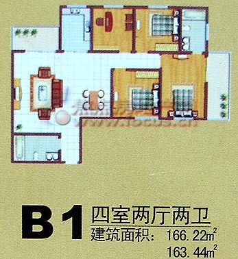 4室2厅2卫-B1- 4室2厅2卫166.22平米