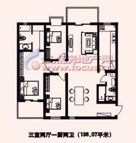 3室2厅2卫-北大花园 3室 2厅 2卫 1厨 138.07平方米