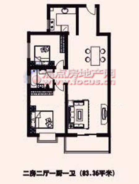 2室2厅1卫-北大花园 2室 2厅 1卫 1厨 83.36平方米