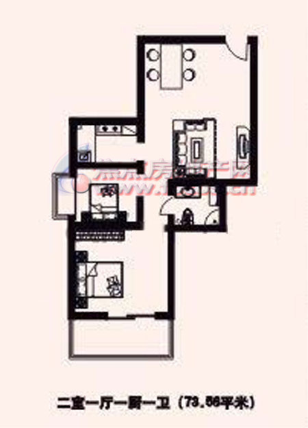 2室2厅1卫-北大花园 2室 2厅 1卫 1厨 73.56平方米
