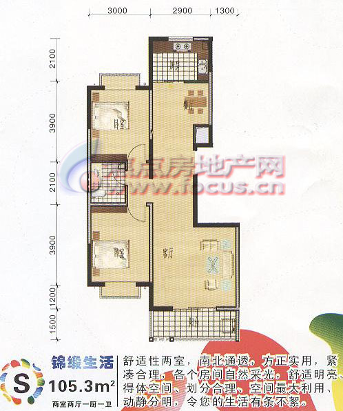2室2厅1卫-2室2厅1卫105.3平米S