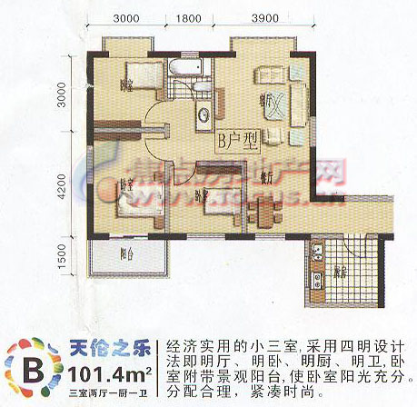 3室2厅1卫-3室2厅1卫101.4平米B