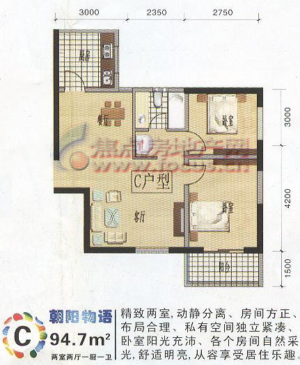 2室2厅1卫-2室2厅1卫94.7平米C