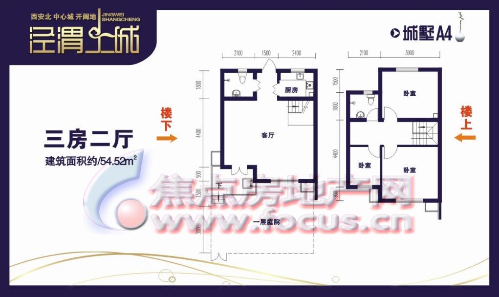 3室2厅2卫-54.52㎡ 3室2厅2卫 城墅A4