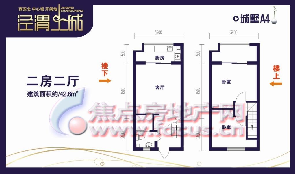 2室2厅1卫-40.60㎡ 2室2厅1卫 城墅A4