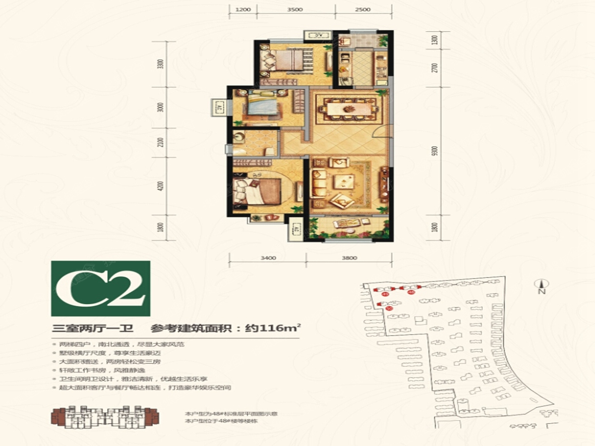 3室2厅1卫-116平户型