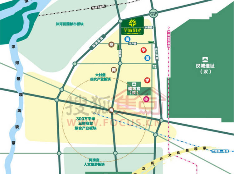 沣东新城六村堡现代产业园板块,东距西三环约2公里,北临绕城高速,西临正在建设中的尚航路。