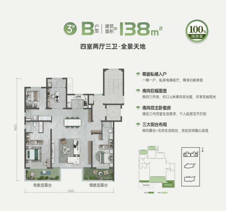 得房率:小高层得房率超过90%,洋房得房率约100%