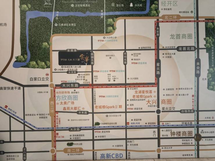 配套设施 :周边有36平方公里汉长安城遗址公园、890亩汉城湖等生态资源,内部有85亩大兴广场、550亩大兴公园等配套。商业方面,有太奥广场、华润万家等,教育资源丰富,拟建4所中小学、1个幼儿园,周边还有红庙坡医院、古都医院等医疗配套。