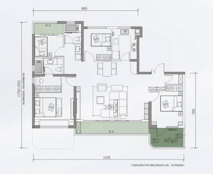 4室2厅2卫1厨, 143平米