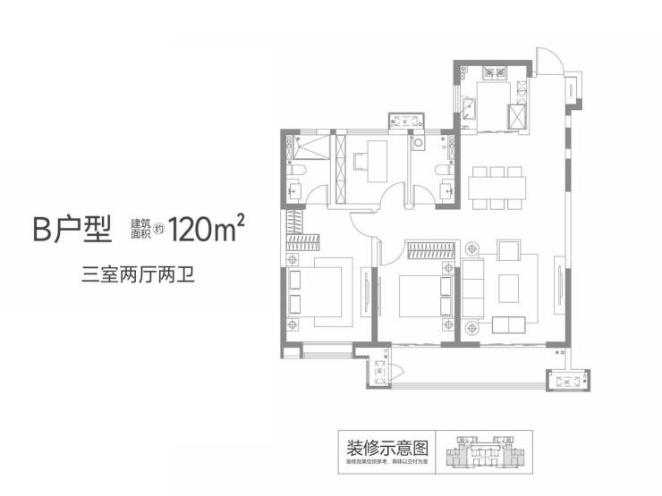 开盘户型:100㎡三室两厅一卫;120㎡三室两厅两卫