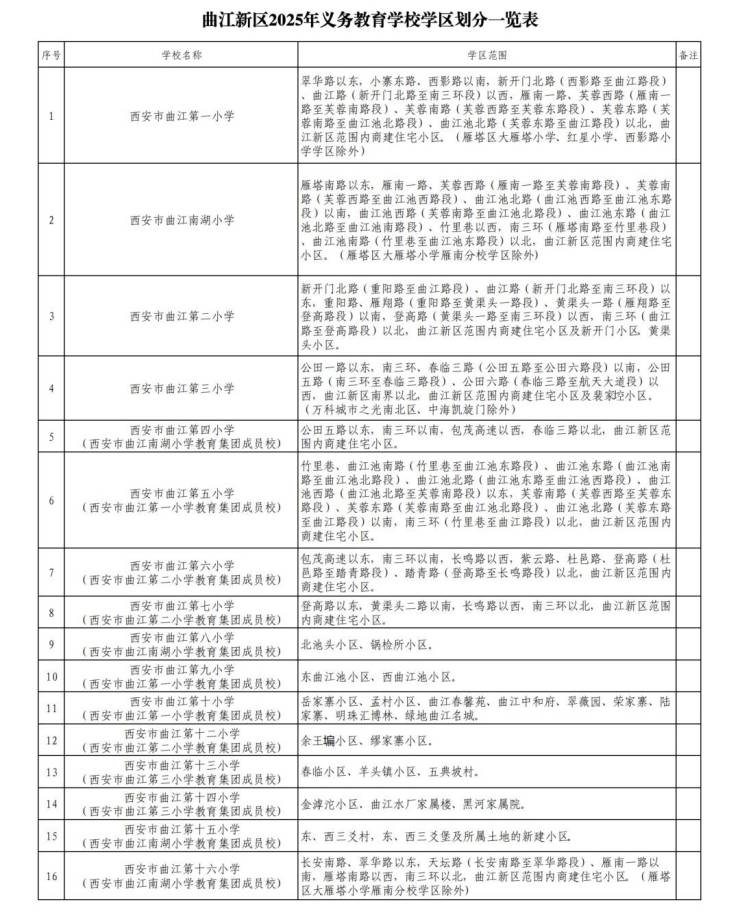 2025西安曲江新区义务教育学校学区划分请看这里→