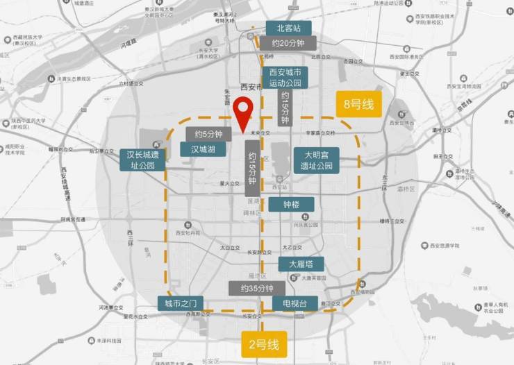 占据北二环金腰带,位于主城立体交通核芯区,15分钟直达北客站、半小时直抵咸阳国际机场,双地铁在侧(2号线、8号线在建中),周边40余条公交线路(18路、33路、37路、38路、39路、108路、155路、182路、228路等),可快速通达西安城区内各区域,高效交通与城市紧密相连,纵享城市发展红利。