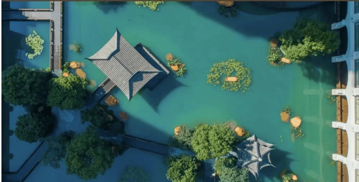 4层的会所,则结合中国园林造景方法,打造了一座曲江上空的空中园林,为圈层定制私属平台。
