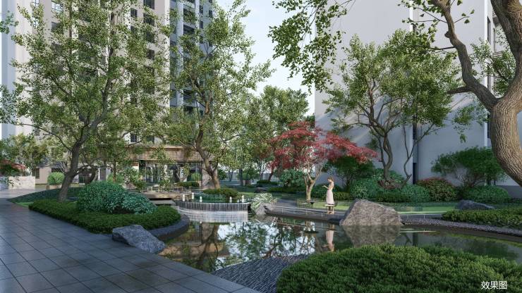 二重山水中轴,错落有致的山水景观,营造层层递进、步步尊荣的归家礼序;三重门厅入户之礼,花团锦簇、绿树掩映,尊迎归家。