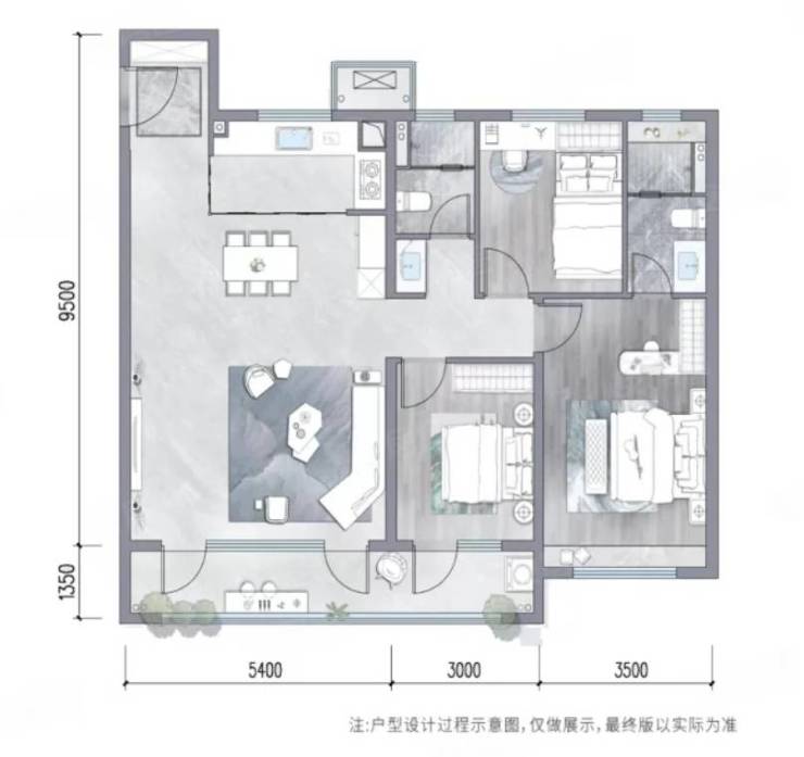 130平米户 3室2厅2卫