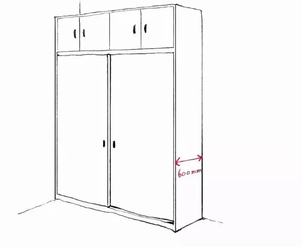 最理想较大众的衣柜深是600mm(包含门板和背板),如果实在地方有限,想压缩一下,建议压缩到580也就可以了。