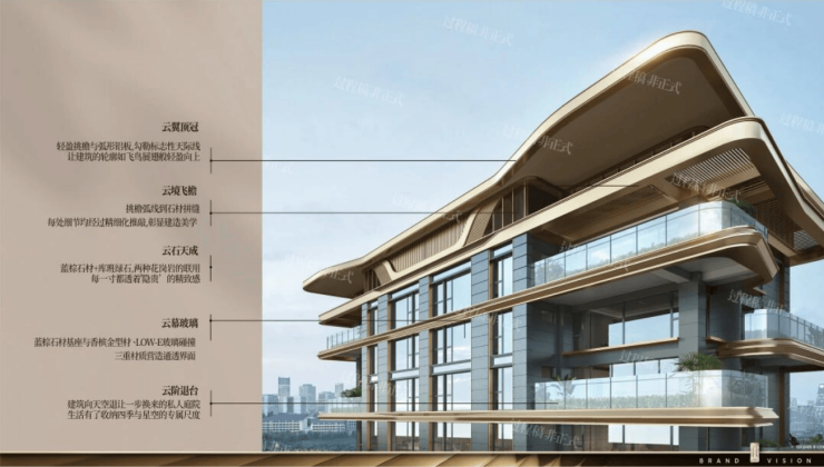 建筑立面运用干挂到顶石材,呈现自然原生的质感。曲面弧形转角设计,与天空的轮廓柔和相融,勾勒出简约而温润的建筑情绪。