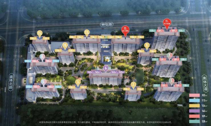 绿城桂月云翠项目位于奥体大道以西、林泓路以南,土地面积64.921亩(住宅63.361亩,商服1.56亩),土地用途为住宅、商服,容积率2.5,建筑密度≤20%,绿地率≥35%,建筑限高80米。